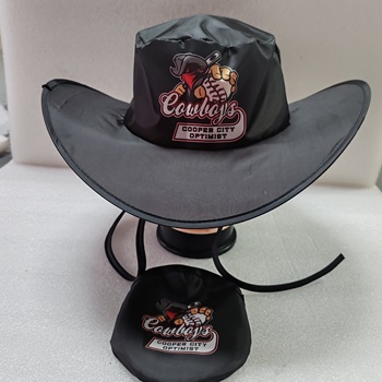 Gorro plegable de poliéster barato personalizado, gorro plegable, gorro de vaquero con bolsa